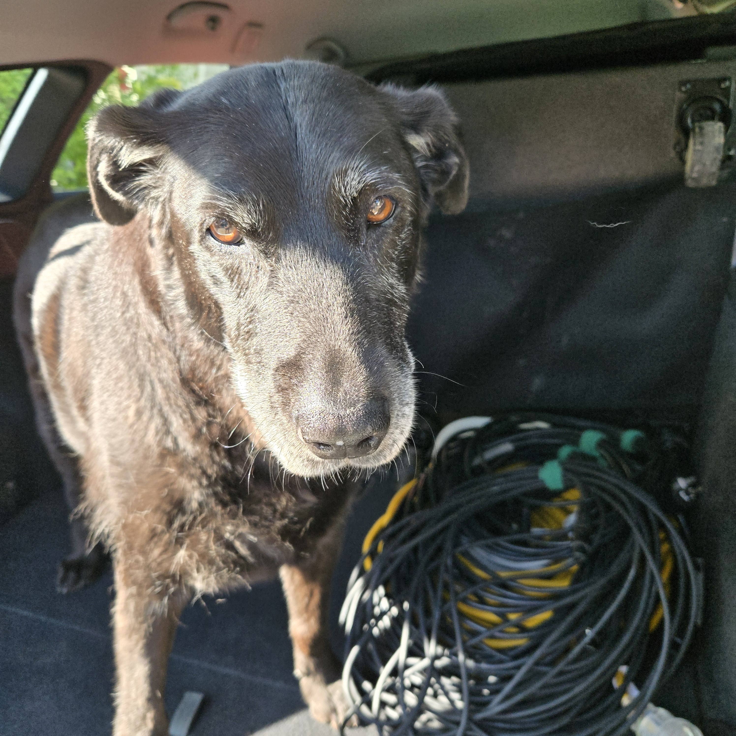 This photo was taken just a couple of weeks before she took sudden turn for the worse, losing the ability to eat or drink. Here she is “helping” to load the car before our show at the Lorne Bowls Club. She was a real people dog and would even come to the occasional gig. One that springs to mind was the one at the Cross Street Hall where she disappeared and I ended up having to drag her out of the men’s toilets.