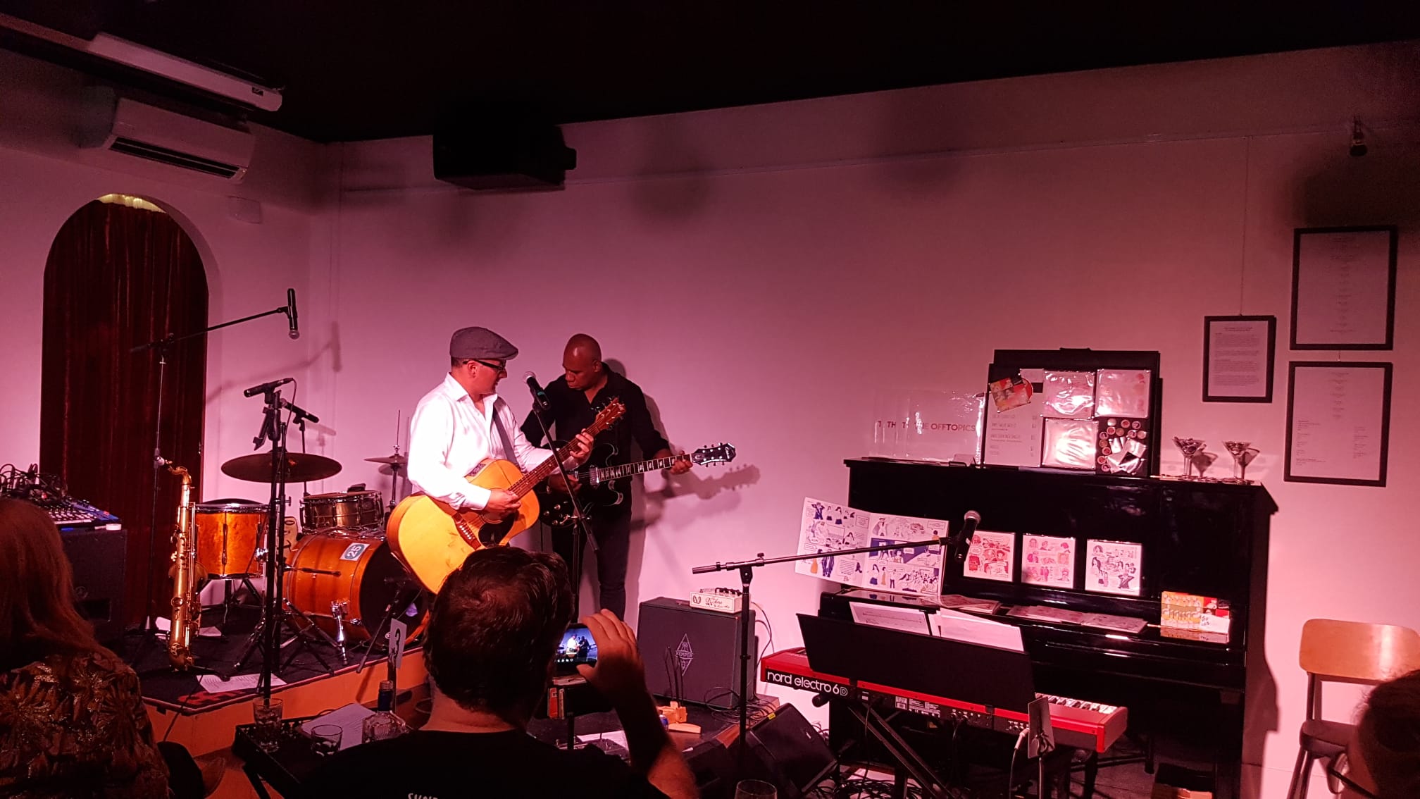 We Offtopics are on stage next. We’ll be playing songs from the new album and we’ve got a couple of very special guests. Mady Brennan aka Madeleine Clare appeared several times with us live over the years to duet on Mr Tonight and we just had to include it on the album. The launch wouldn’t be the same without the quirky dynamic she shares with the Love Wombat.We’re also going to be joined by The OG from G-roy, Melbourne’s Queen of Soul and Hay’s finest export – Kylie Auldist! She’s best known for her work with The Bamboos and Cookin on Three Burners. Their song “This Girl” turned into a European club hit when it was remixed by Kungs.