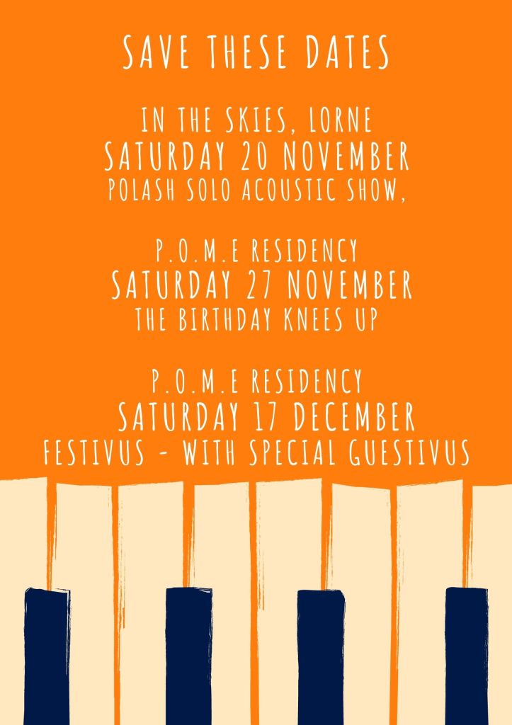 Here’s the big news first. Our gig at P.O.M.E in Richmond was such a success that they actually asked us back. So here’s an official invitation to attend our return show on Saturday 8 May or as we refer to it – the alternative Australia Day.