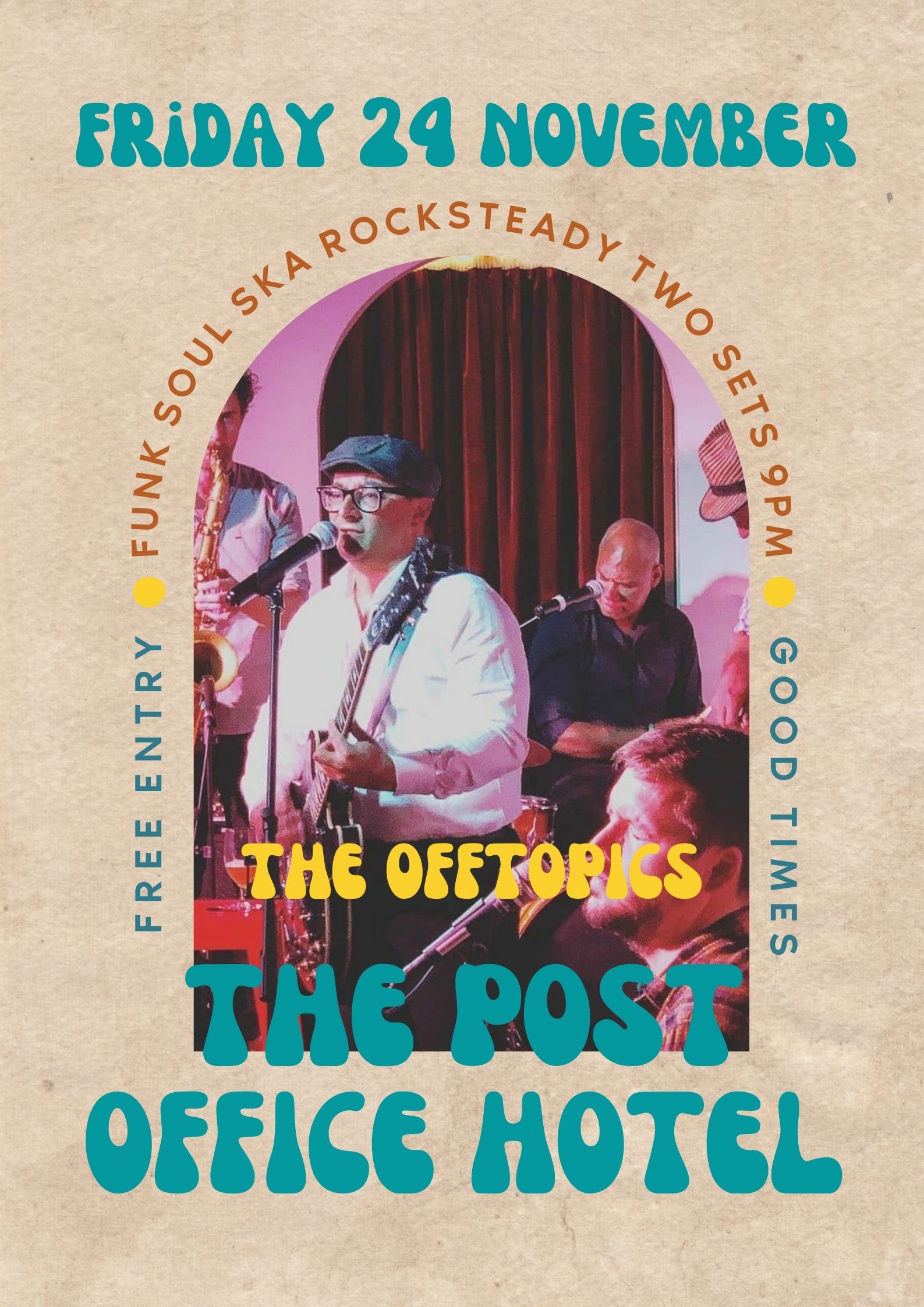 The band is fully vaxed and all our worries have been axed. I’ll be celebrating my birthday on the night of Saturday 27 November and, as it happens, The Offtopics are playing at POME that night.